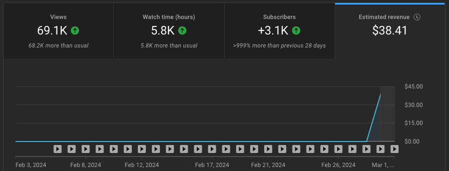 To be clear: $38.41 is not going to change my life. But making real money in my first month of posting is basically objective validation that I'm headed in the right direction.
