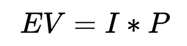 In plain English, this means that the expected value of a decision (EV) is equal to its impact (I) and the likelihood that you're successful at it (P).